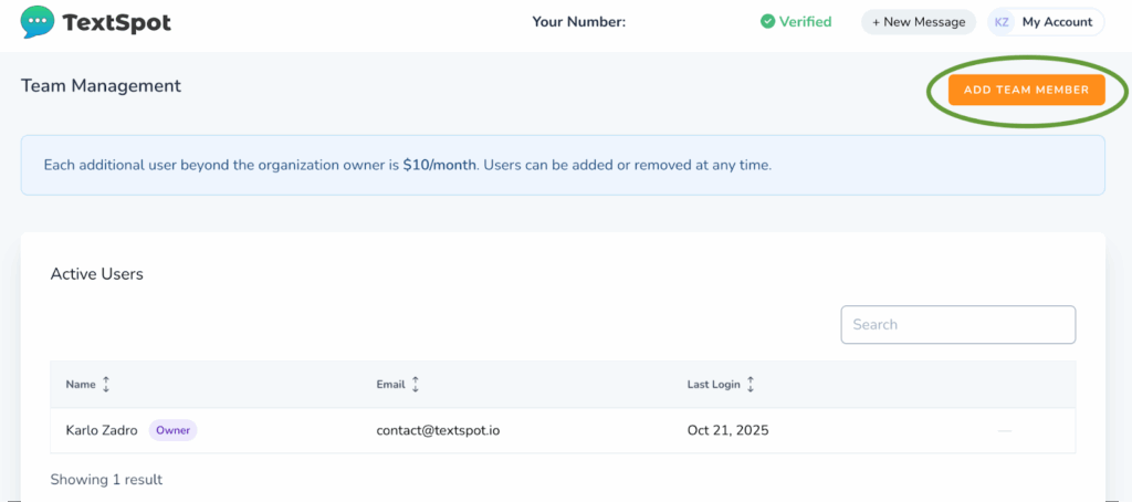 Add unlimited users to your TextSpot account so every team member can manage their own contacts and conversations.